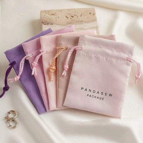 Pandabracelet özel süet kadife Flap İpli çanta Logo takı konteyner için bilezik kolye kumaş kılıfı ambalaj